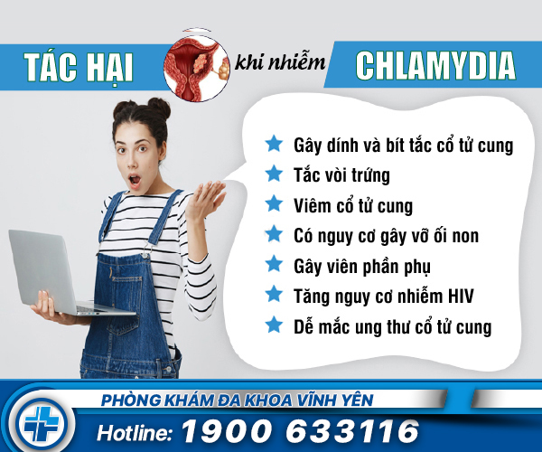 Bác sĩ tại Phòng khám đa khoa Vĩnh Yên cho biết: Bệnh Chlamydia nếu không được điều trị kịp thời có thể dẫn đến những biến chứng nghiêm trọng và vĩnh viễn ở cả nam và nữ giới, đặc biệt là ảnh hưởng đến sức khỏe sinh sản.