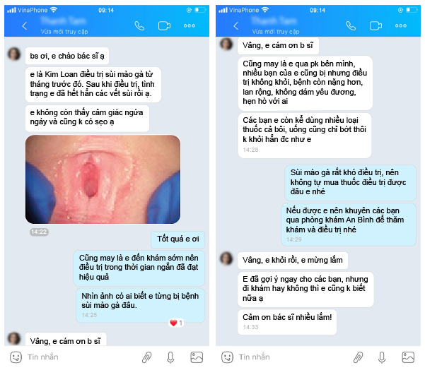 Chuyên khoa bệnh xã hội phòng khám đa khoa Vĩnh Yên đã tiếp nhận và điều trị thành công cho nhiều trường hợp bị mắc bệnh sùi mào gà. Nhận được phản hồi tích cực từ phía bệnh nhân: