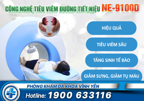 Hiện nay, công nghệ tiêu viêm ngoài da NE-9100D thế hệ mới được biết tới là một trong những phương pháp hiệu quả để điều trị viêm đường tiết niệu. Phương pháp hiện đang được các bác sĩ chuyên khoa tại Phòng khám Đa khoa Vĩnh Yên áp dụng.