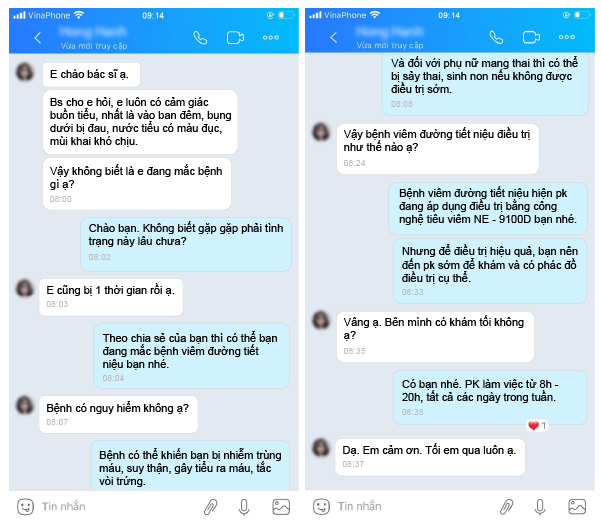 Chuyên khoa bệnh tiết niệu phòng khám đa khoa Vĩnh Yên đã tiếp nhận và điều trị thành công cho nhiều trường hợp bị mắc bệnh viêm đường tiết niệu chảy mủ. Nhận được phản hồi tích cực từ phía bệnh nhân: